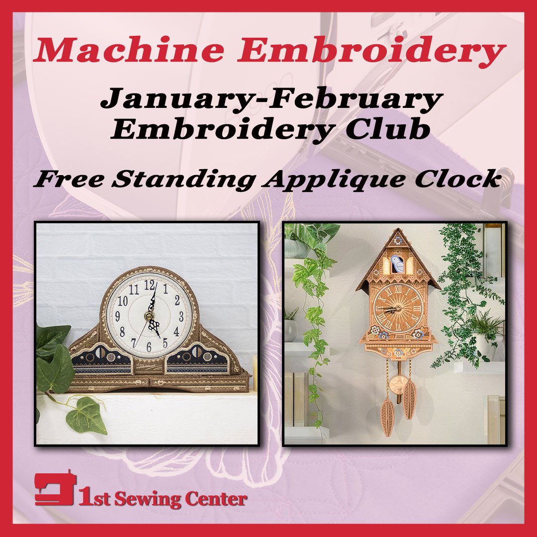 We're going cuckoo for clocks this January and February. You choose whether you want to make a cuckoo clock or a vintage style mantle clock. We're going cuckoo for clocks this January and February. You choose whether you want to make a cuckoo clock or a vintage style mantle clock. Create a charming piece of home decor when you stitch the Freestanding Cuckoo Clock, a fusion of traditional style and innovative machine embroidery! Or, add classic machine embroidery charm to your home with the new Freestanding Mantle Clock; featuring interchangeable front panels for every season!
